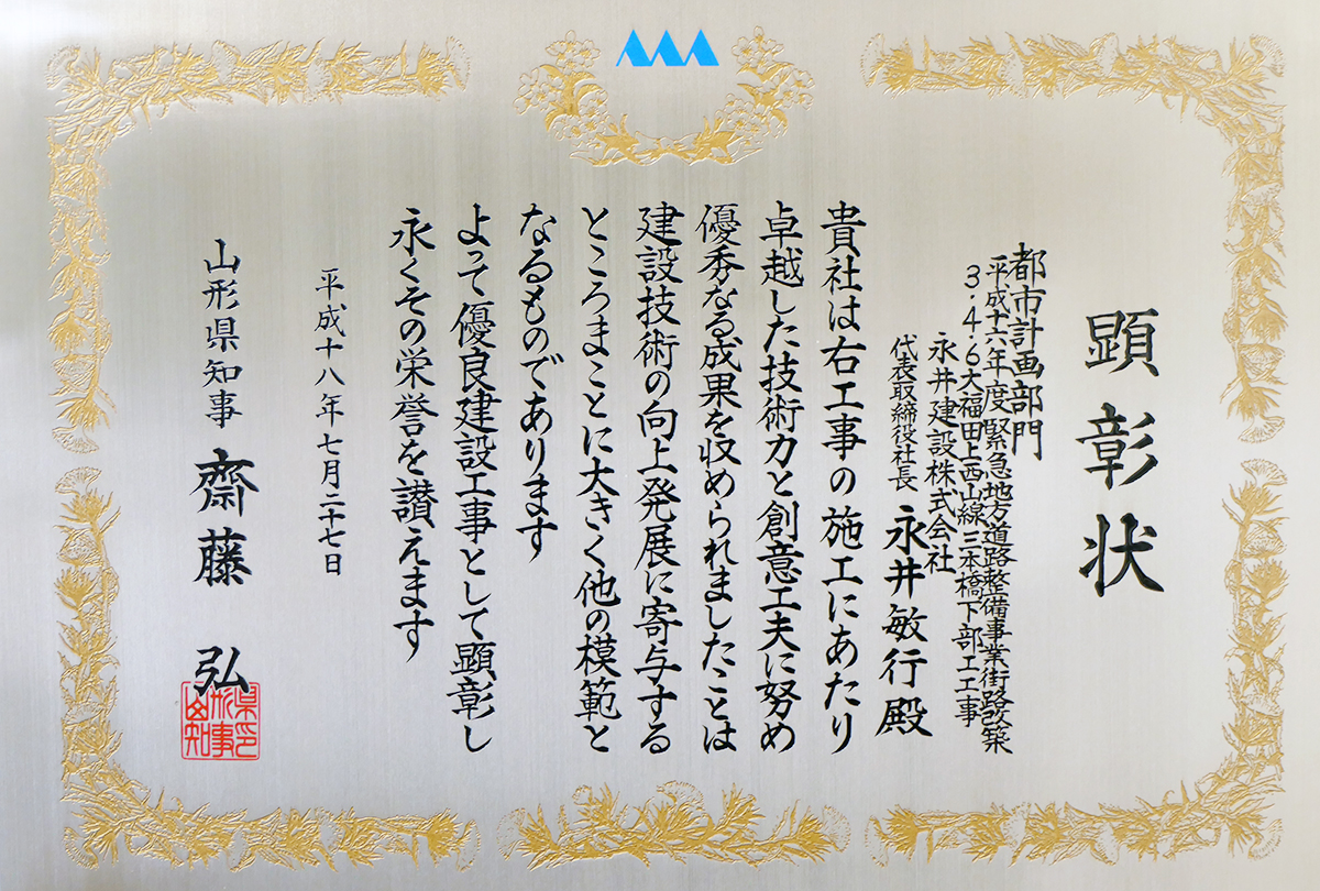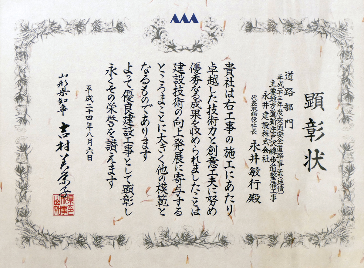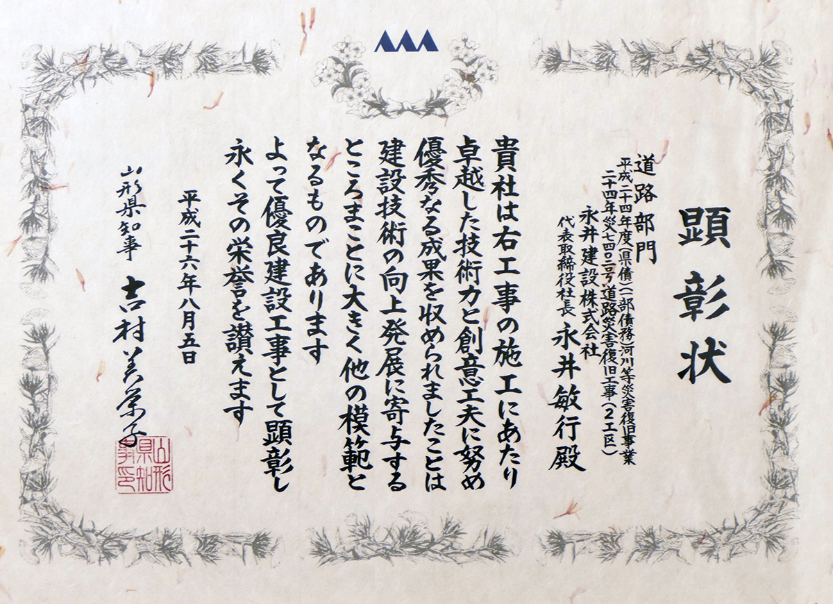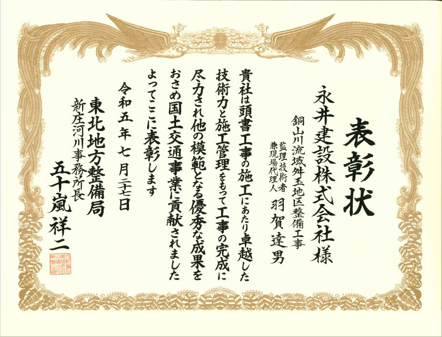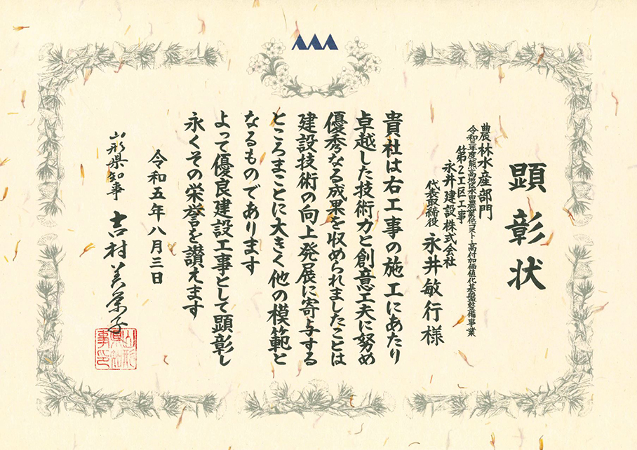 | 令和5年度 山形県優良建設工事等顕彰 |