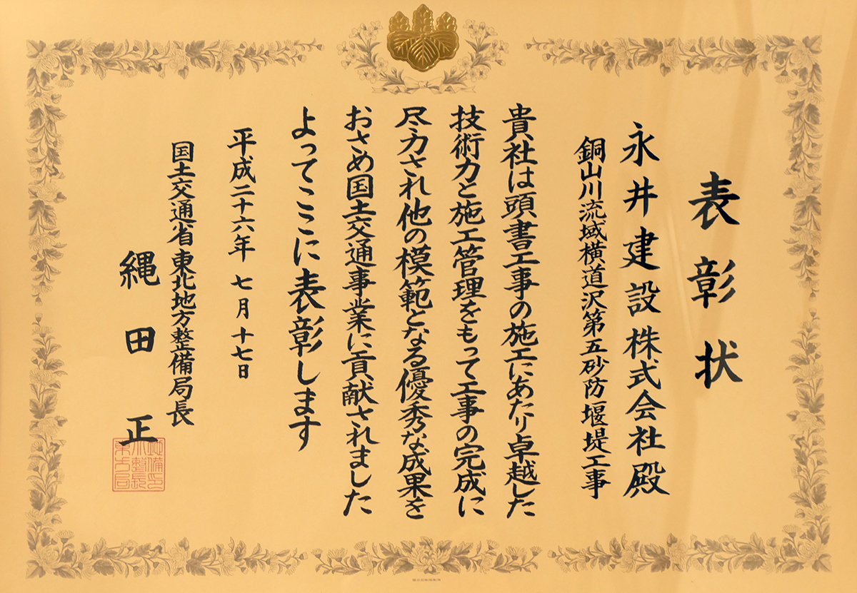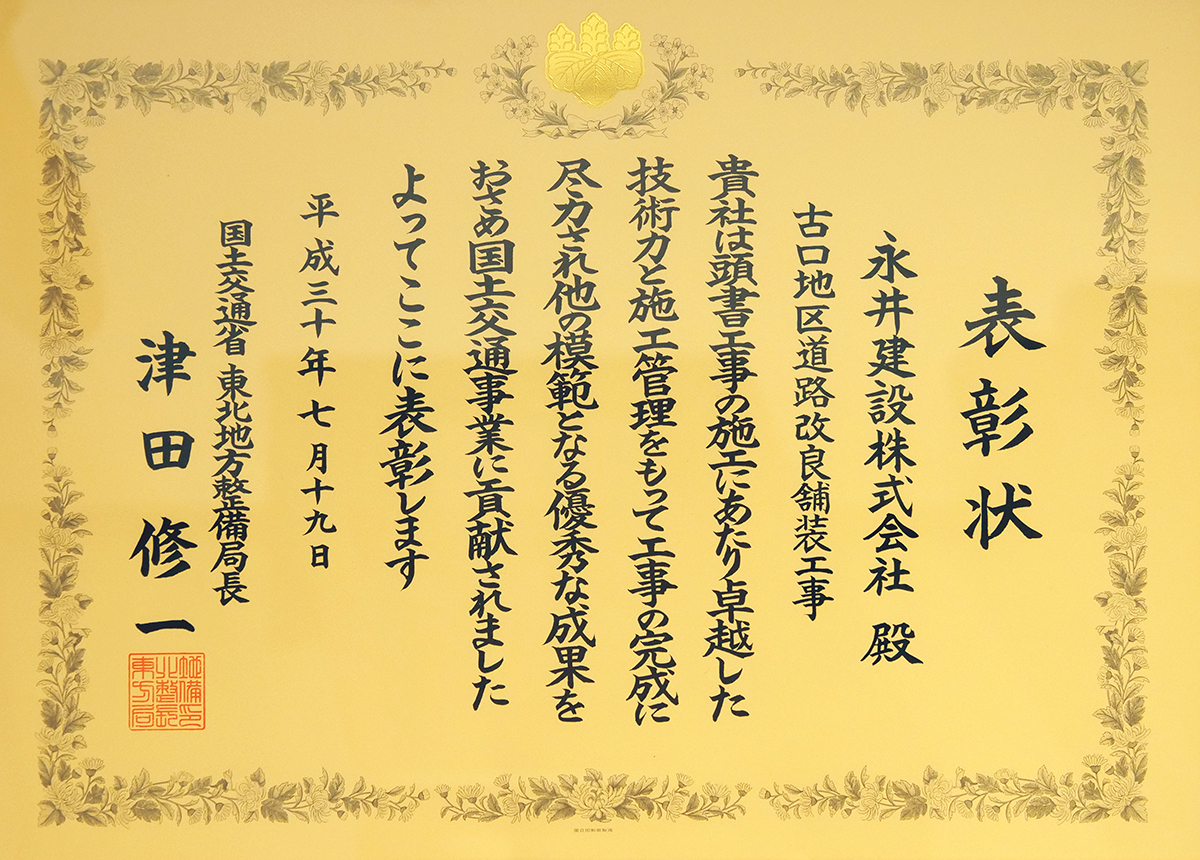 | 平成26年度 国土交通省東北地方整備局長表彰 |