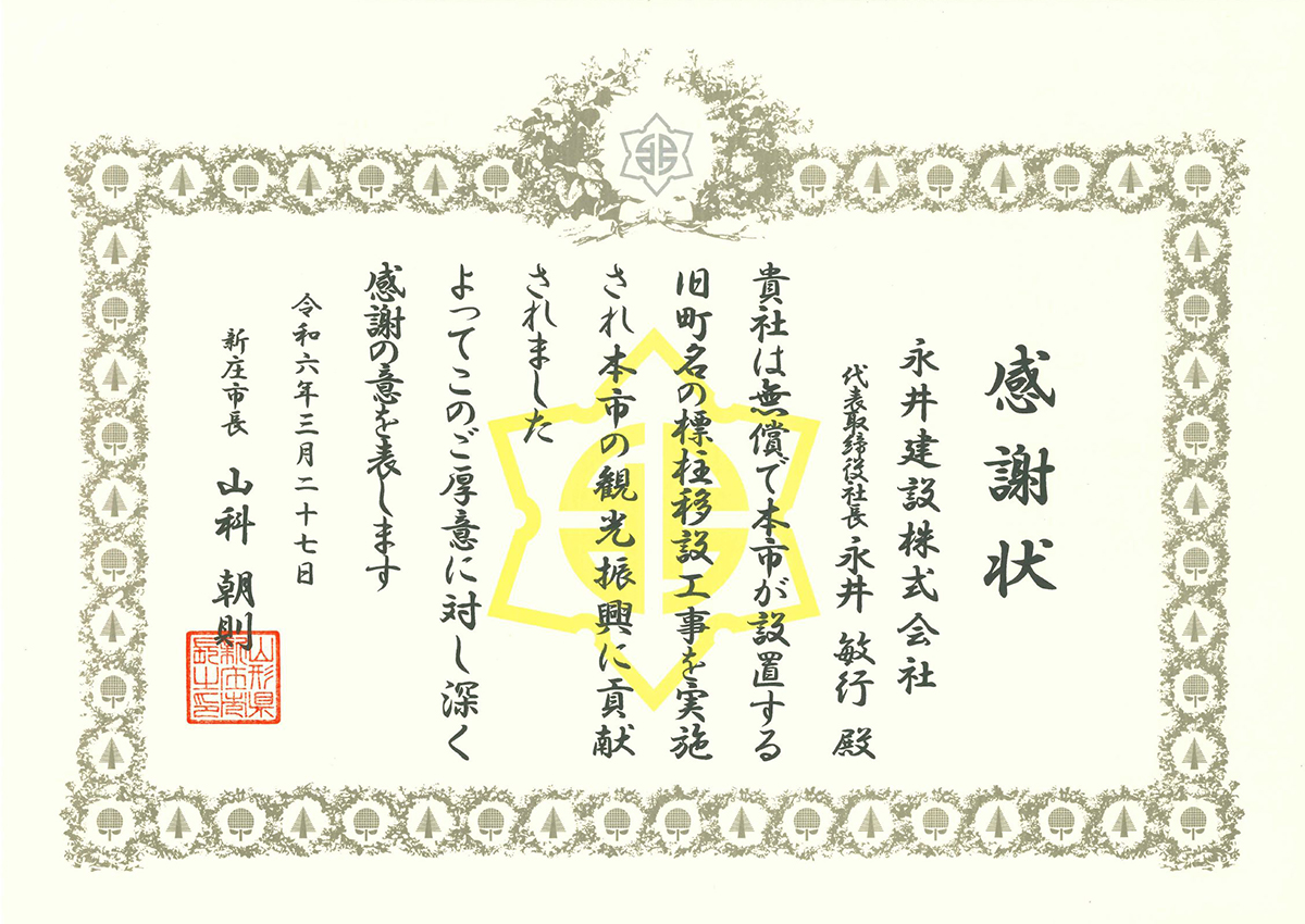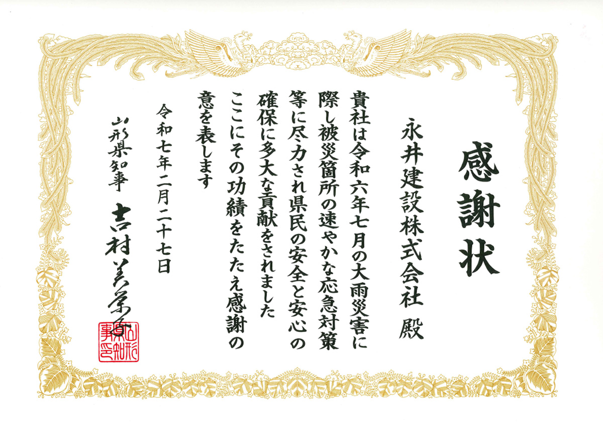 山形県県土づくり感謝状(令和6年7月25日からの大雨災害対応関係) |