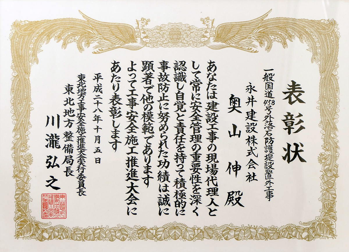| 平成26年度 国土交通省東北地方整備局長表彰 |
